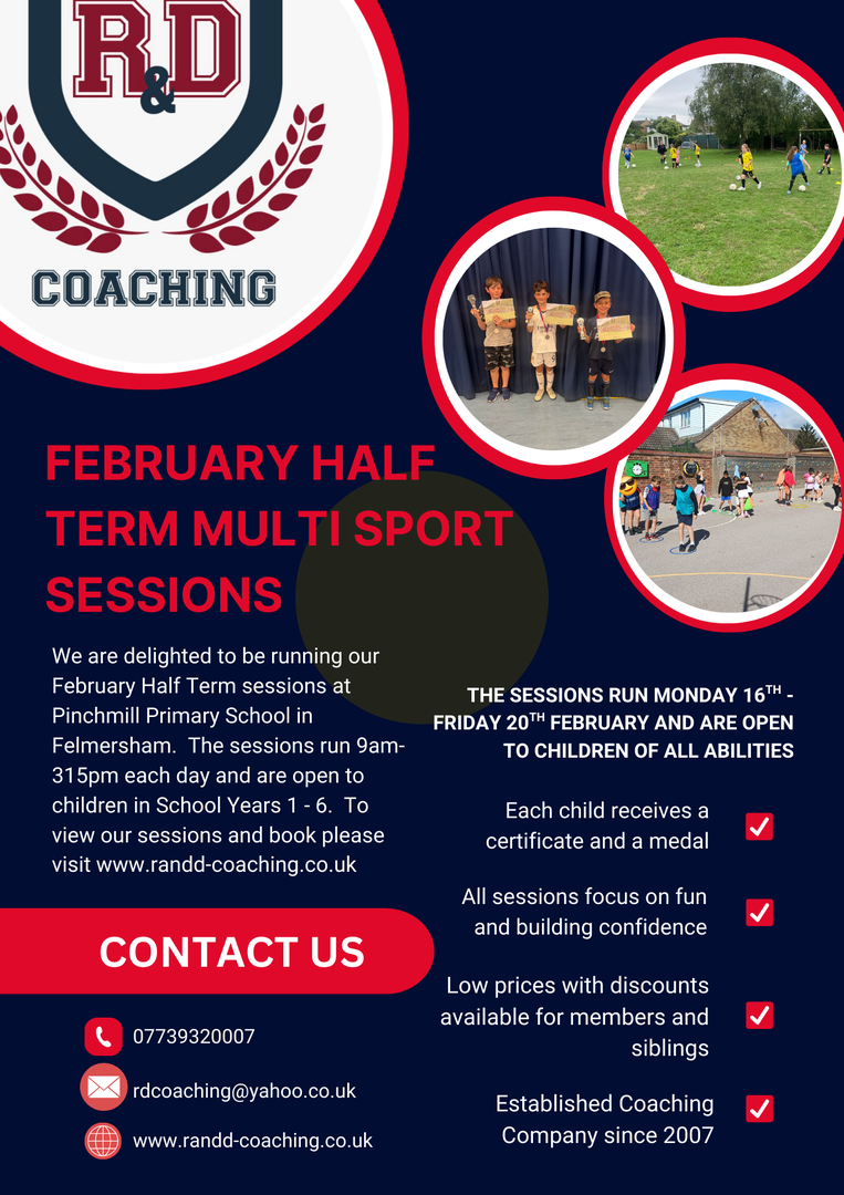 Our February half term sessions are now open for bookings. Our normal venue in St Neots is unavailable due to having planned work done so we are unable to run any sessions in St Neots that week. We will however be back in St Neots for Easter, May and the Summer as normal. For February half term we will be running 5 days of multi sport sessions in Felmersham.